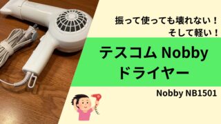 買ったもの 振って使っても壊れない!そして軽い!テスコム Nobby ドライヤーNB1501 ドライヤーを買い替えました。Nobby ドライヤーNB1501レビューです。ウチの家族はドライヤーを振って使うクセがあって、半分に折りたたむところが壊れました。折りたためない方が頑丈です。半分に折り畳めないものを探しました。そして、重たいと... 2025.09.25 買ったもの